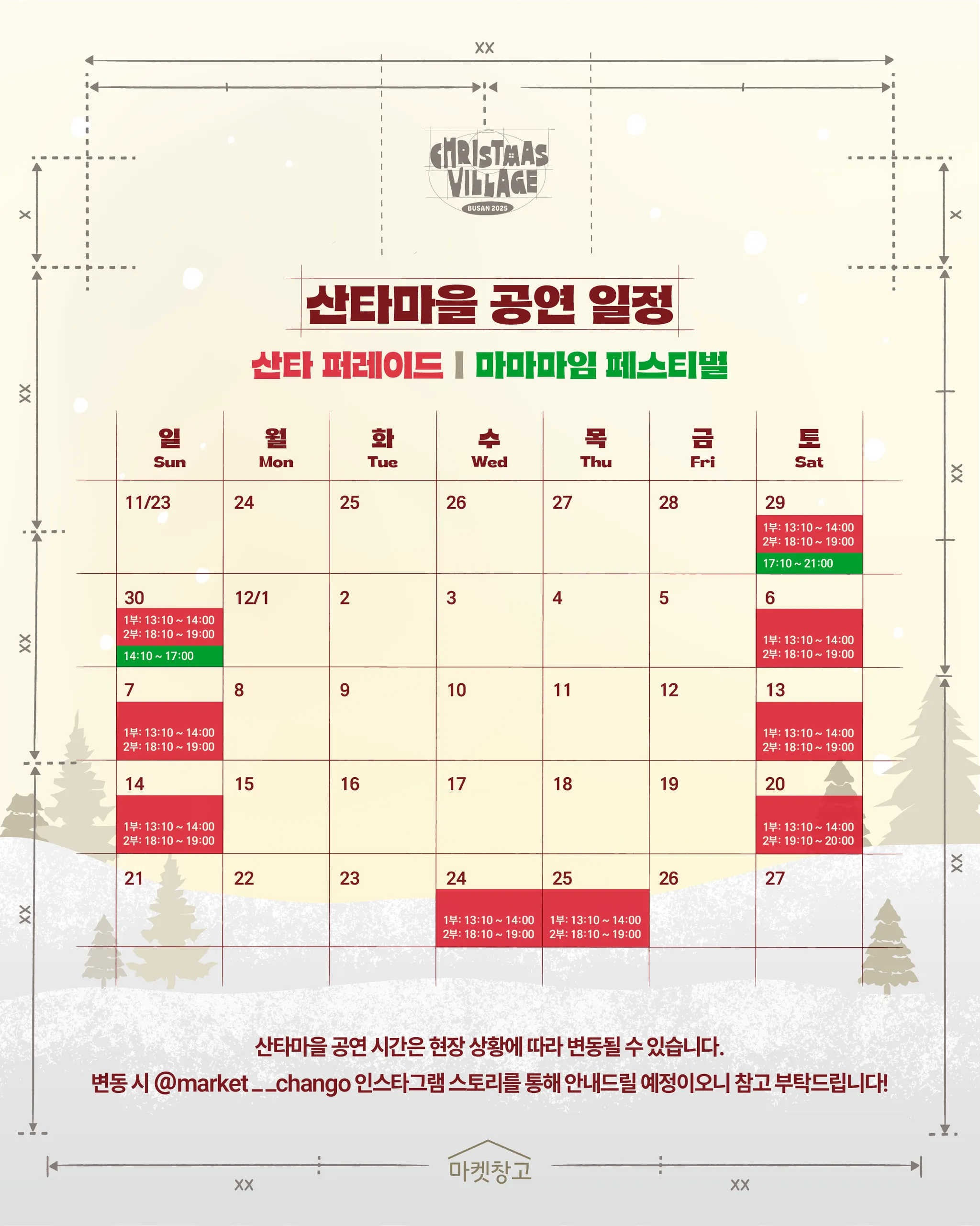 올해 산타마을은 12월 1일부터 12월 31일까지 운영됩니다.