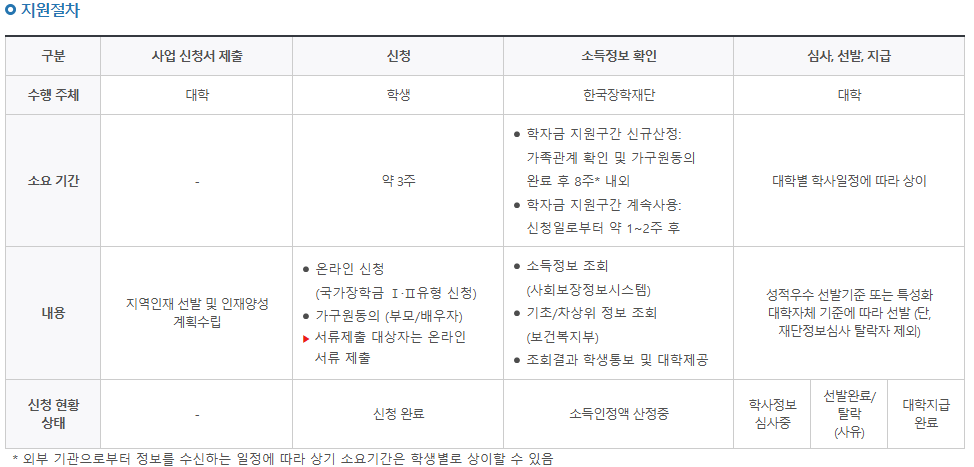 | 계속 지원 | 기선발자 | 직전 학기 80점 이상 및 대학별 최소 이수학점 충족 |